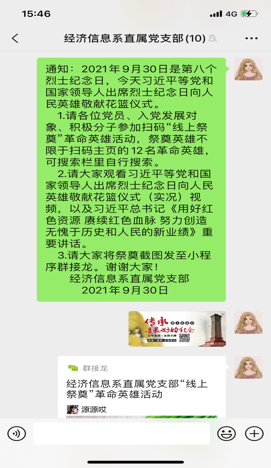 2021年9月30日是第八个烈士纪念日。为了表达对革命先烈和革命前辈坚毅崇高的信仰,经济信息系直属党支部开展了相关的活动。参加此次活动的有经济信息系直属党支部全体党员、入党发展对象及入党积极分子40余人。