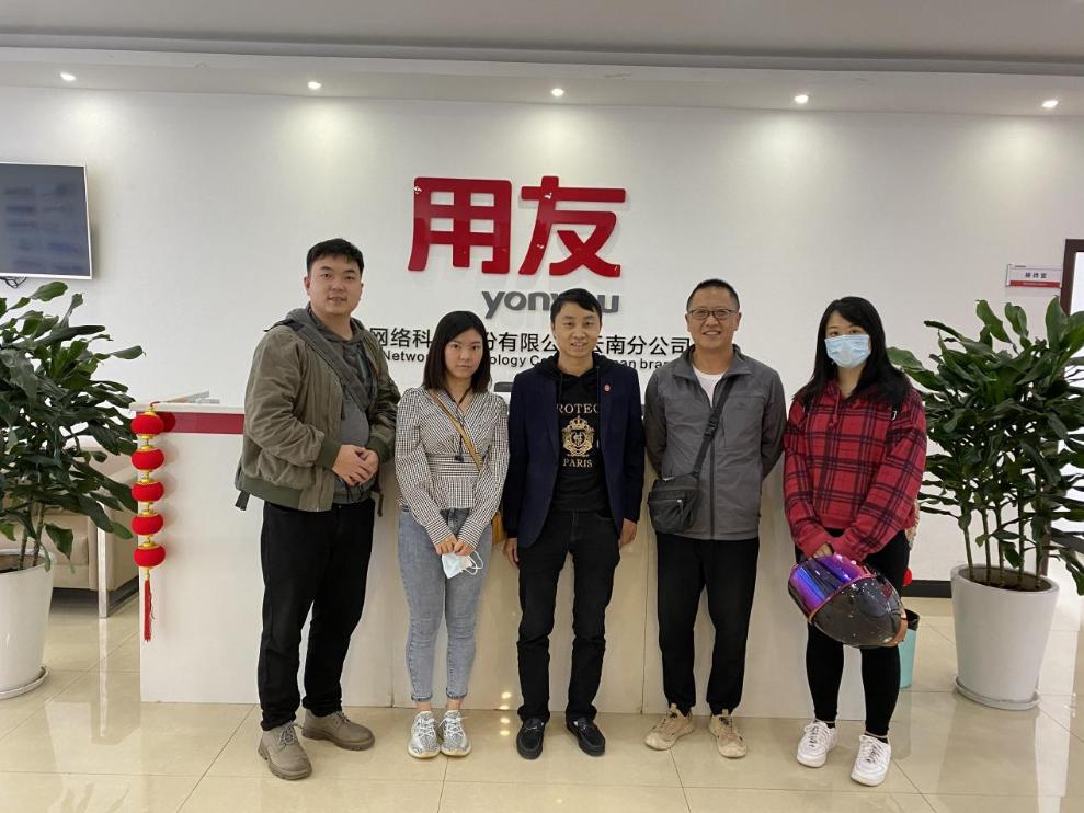 云南分公司总经理王总带领教师参观了企业工作基地,对公司概况进行简要介绍。王总表示,2021年度,经济信息系会计专业学生在用友集团实习期间工作努力,表现突出,赢得了客户的认可和赞誉。