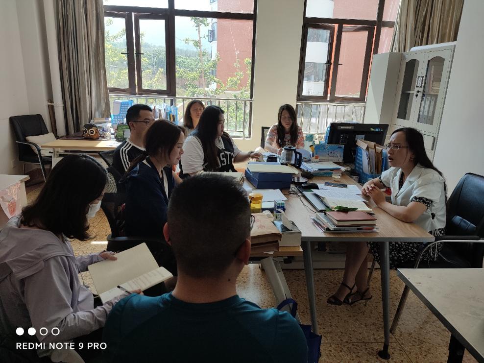 图为高翠带领教师学习近平总书记在清华大学考察时的重要讲话