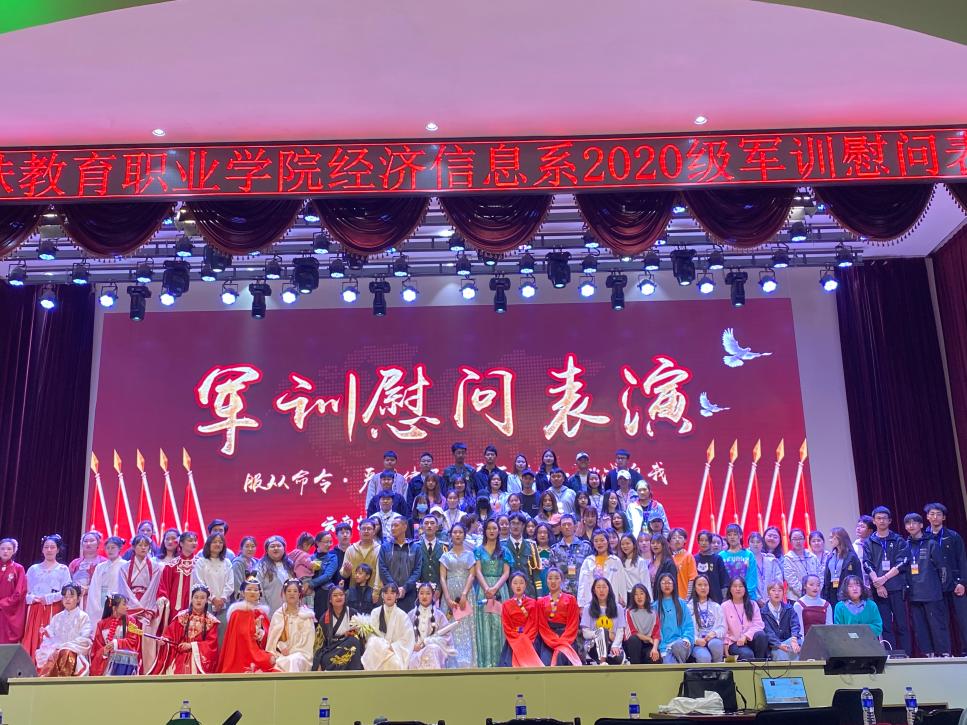 为丰富点点官网2020级同学的军训生活,缓解军训时的紧张心情,营造一个欢快的军训氛围。2021年3月12日19时,由经济信息系团总支、学生会主办的以“青春正磨砺,热血铸军魂”为主题的军训慰问演出在学校礼堂隆重举行,纪检监察处处长郭俊、学生处副处长任彬、教务处副处长兼经济信息系主任高翠亲临现场观看了晚会,出席晚会的还有各系团总支代表、学生会代表及2019级特邀学生群体。活动参会师生共计800余人。