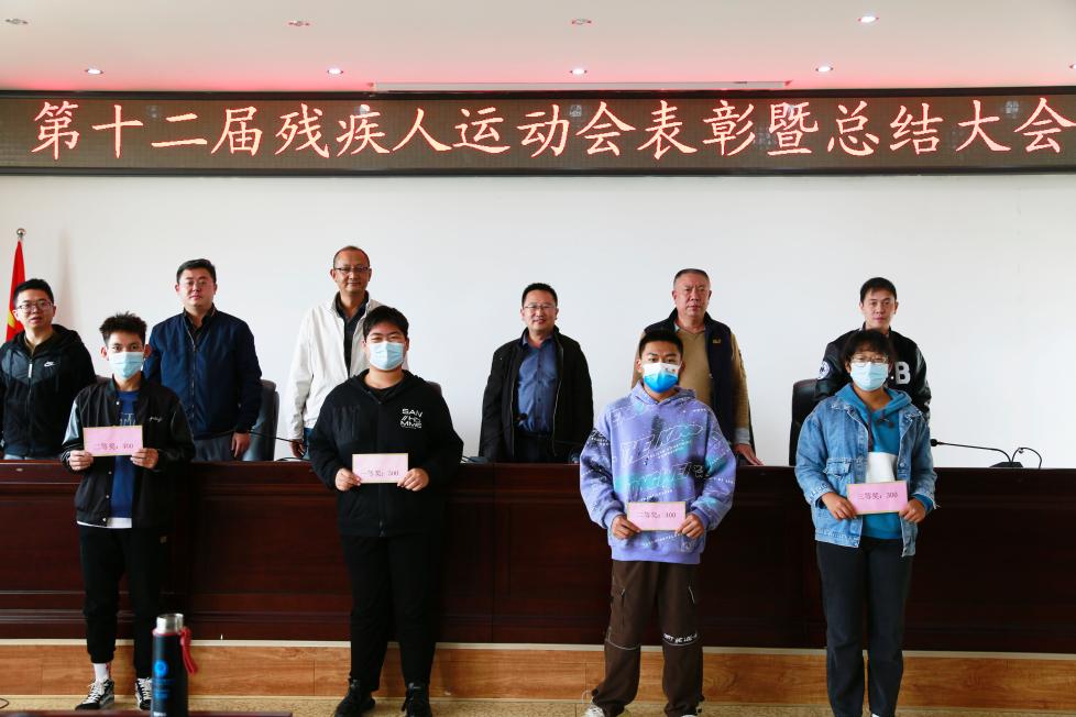 院长董亮宣读表彰奖励,学院领导向5名获奖运动员代表发放奖励,同时向运动员们表示热烈祝贺并致以崇高的敬意,激励他们再接再厉,再创佳绩。弘扬学院残疾运动员自强不息、奋勇争先的精神风貌,促进学院残疾人体育事业不断发展。