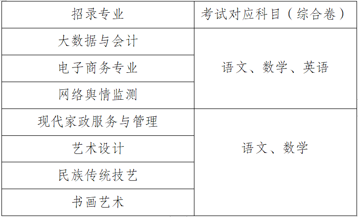 乡村振兴专项类高中毕业生单招考核方式与普通高中毕业生单招考核方式相同。普通高中学业水平考试量化成绩+职业技能考试成绩=总成绩。