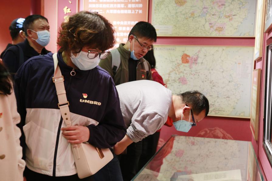 在前往柯渡纪念馆的大巴车上,参加本次主题教育实践活动的全体党员集体晨读《我的祖国》爱国诗,放声齐唱《没有共产党就没有新中国》《我和我的祖国》等经典红歌,用质朴的方式表达了对党的热爱与忠诚。在柯渡红军纪念馆工作人员的讲解下,支部党员们详细聆听了红军长征的艰辛历程,参观了中央红军总部长征驻地旧址,总参谋部作战室,毛泽东、周恩来、朱德、刘伯承等老一辈革命家长征路居丹桂村的休息室及烈士遗物。看着厅内红军长征途中留下的一件件文物,一张张图片,难掩沧桑古朴,都记述着红军长征中的感人故事;聆听着红军长征驻扎柯渡的革命历史故事,党员们深切感受到“红军不怕远征难,万水千山只等闲”的豪迈气概,身临其境地重走了一次红军长征路。重走长征路,使大家切身融入“渡江令”发布时的场景,回顾了红军长征路上不朽的印记,被红军战士坚韧不拔、团结战斗的顽强意志和革命精神深深震撼。随后,在纪念馆内,全体党员举起右手,面对党旗庄严宣誓,重温入党誓词。