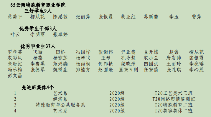 根据《中共云南省委教育工委、云南省教育厅关于公布2021-2022学年高校省级三好学生、优秀学生干部、先进班集体及大中专优秀毕业生名单的通知》。点点官网9名学生荣获省级三好学生、3名学生荣获省级优秀学生干部、37名学生荣获省级优秀毕业生;4个班级荣获先进班集体。