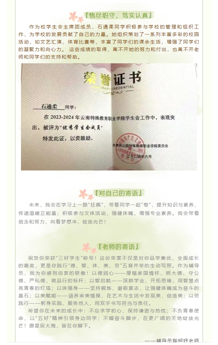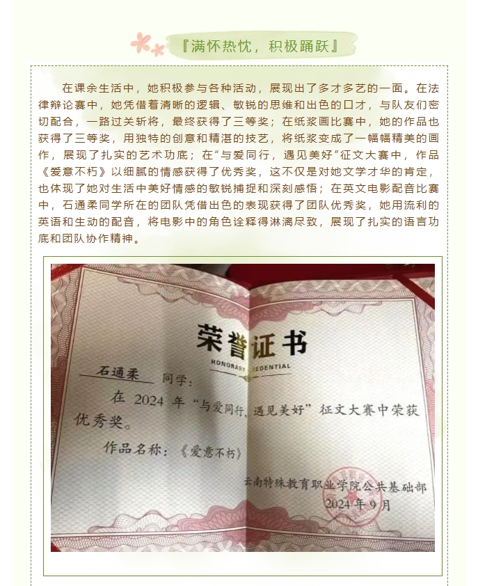 青衿之志 不负韶华|石通柔:砥砺前行,不负韶华