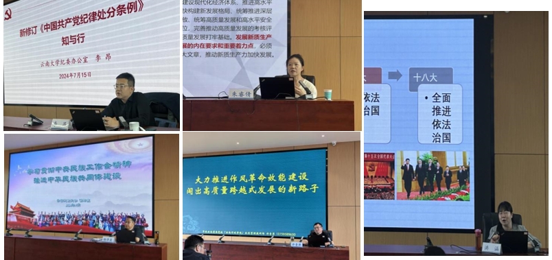本次培训邀请了云南大学纪委办干部李昂、云南民族大学文学与传媒学院党委书记杨泽泉、省委党校朱睿倩、许青萍、洪涵五位专家一是围绕党规党纪、反面典型案例讲授“作风课”帮助参训学员深刻理解《中国共产党纪律处分条例》的内涵要义和实践要求,搞清楚党的纪律规矩是什么,弄明白能干什么、不能干什么,切实做到明纪法、知敬畏、存戒惧、守底线;二是围绕新质生产力的科学内涵、战略意义以及新质生产力的云南优势与路径思考等方面讲授“专业课”让参训学员进一步了解了新质生产力;三是围绕大力推进作风革命效能建设 闯出高质量跨越式发展的新路子讲授“党性课”帮助党员干部提升担当意识,知道工作如何干、乐意干;四是围绕领导干部应知应会党规国法讲授“法治课”;五是围绕学习中央民族工作会议精神建设中华民族共同体讲授“思想课”着力提升党员党性意识、理论水平、专业能力和工作作风,补足精神之“钙”、筑牢思想之“魂”。