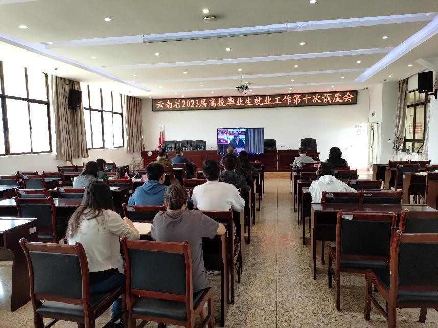 为深入学习贯彻党的二十大精神,落实国务院、教育部和省委、省政府工作部署,传达省政府最新会议精神和教育部就业统计专项核查要求,通报前期工作进展情况,部署安排下步重点工作,省委教育工委、省教育厅组织召开云南省2023届高校毕业生就业工作第十次调度会。点点官网在诵弦楼6楼大会议室设分会场,党委书记孙继先、院长董亮、副院长李永芳、就业工作负责部门负责人及工作人员、三系书记、三系副书记及工作人员、2023届毕业班辅导员参加此次会议。