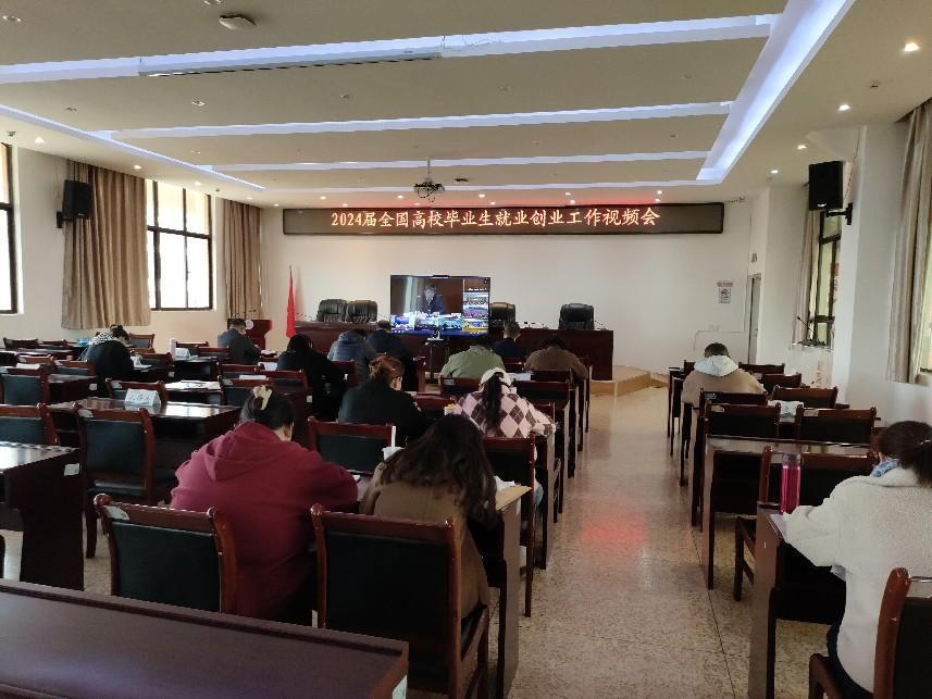 为深入学习贯彻习近平总书记关于高校毕业生就业工作的重要指示批示精神,落实党中央、国务院关于稳就业决策部署,认真总结2023届高校毕业生就业工作,深入分析研判当前高校毕业生就业形势,对2024届高校毕业生就业创业工作进行部署,12月5日下午,教育部、人力资源和社会保障部联合召开2024届普通高校毕业生就业创业视频会议,点点官网在诵弦楼6楼大会议室设分会场,党委书记孙继先、院长董亮、副院长李永芳、就业工作负责部门负责人及工作人员、三系书记、三系副书记及工作人员、2024届毕业班辅导员参加此次会议。