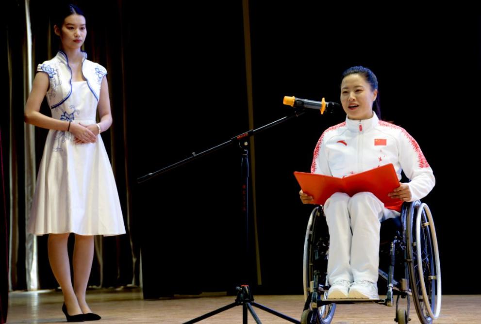 宣讲团成员逐一宣讲,他们从不同侧面、不同切口,深情讲述自己与残奥会、自己与体育运动的故事,全方位立体式地展示了克服困难、顽强拼搏、为国争光的精神风貌,以实际行动诠释了奥运精神,宣传了云南运动员迎难而上、追求卓越、共创未来的宝贵精神,赢得了在场师生的阵阵掌声。他们包含激情的宣讲、自强不息的精神激励着现场的青年学生坚定信念、奋力奔跑、勇攀高峰,鼓舞着现场的残疾学生迎难而上、努力奋斗、实现梦想。