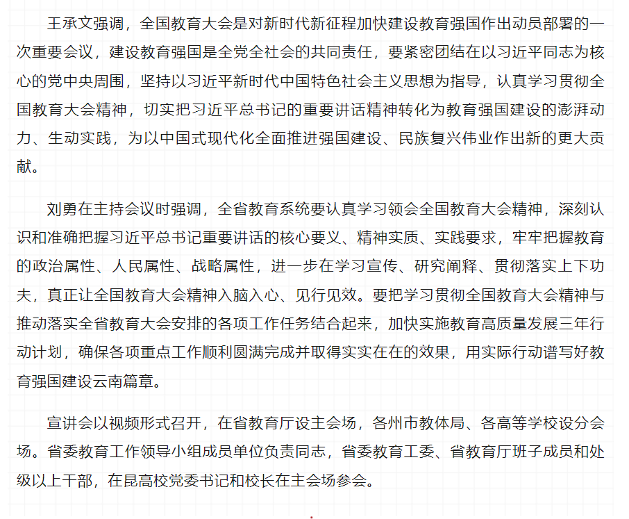 学习贯彻全国教育大会精神宣讲会在昆召开