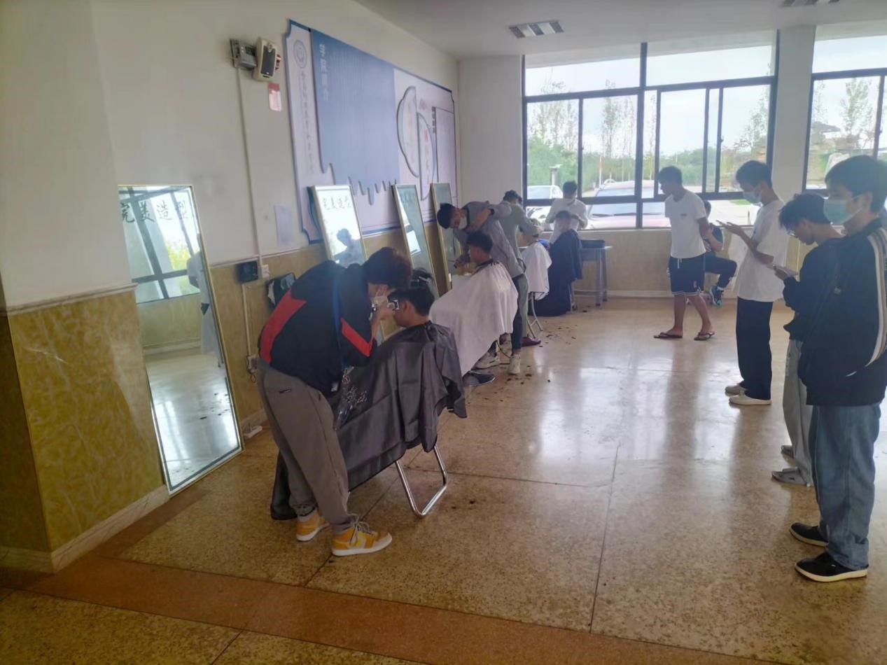 由于疫情防控需要,学院实行封闭式管理,对于9月返校的学生,特别是男生来说,在校已经快一个月,头发较长没法修剪影响容颜。为解决学生的急难愁盼,后勤服务中心联合呈贡区实力锦城尚艺造型理发师,为学生提供理发服务。图为理发现场一10月1日上午9点,理发师来到TapTap点点教学楼一楼为学生提供理发服务,...