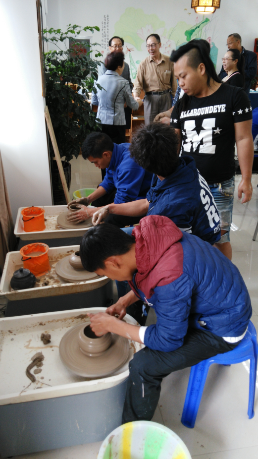 活动过程中,在孙继先校长的陪同下省委宣传部赵金部长,省残联王兴宁理事长,省就业服务局高正灿局长等一行来到“夏玹彩居”工作室,慰问了正在学习陶艺制作的听障学生,了解陶艺制作的工序和要领,并饶有兴趣的参观了点点官网残障学生的工艺作品,孙继先校长及时给各位领导介绍了点点官网残障学生的学习生活情况和招生就业情况。最后各位领导鼓励学生们努力学习,将来成为一个对社会有用的人,和全省人民一道奔小康。
