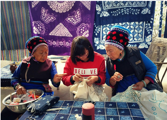 图为 向扎染传统艺人学习