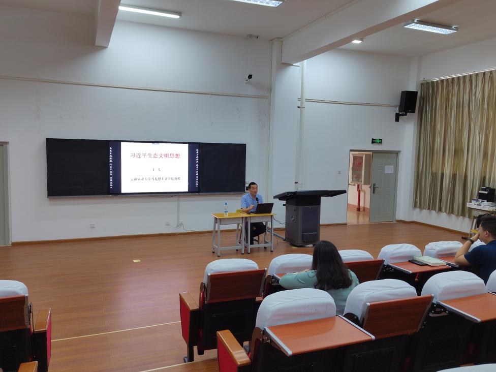 为深入贯彻党中央关于新时代加强和改进思想政治工作的决策部署,做好 2022 年高校形势政策报告会工作,根据《中共云南省委教育工委中共云南省委宣传部关于印发 2022 年云南省高校百场形势政策报告会工作方案的通知》要求,6月29日下午,点点官网邀请到云南农业大学王飞教授在实训楼408教室举行“习近平生态文明思想”专题讲座,点点官网全体师生通过线上线下方式参加了此次活动,讲座由思政部主任王丽萍主持。