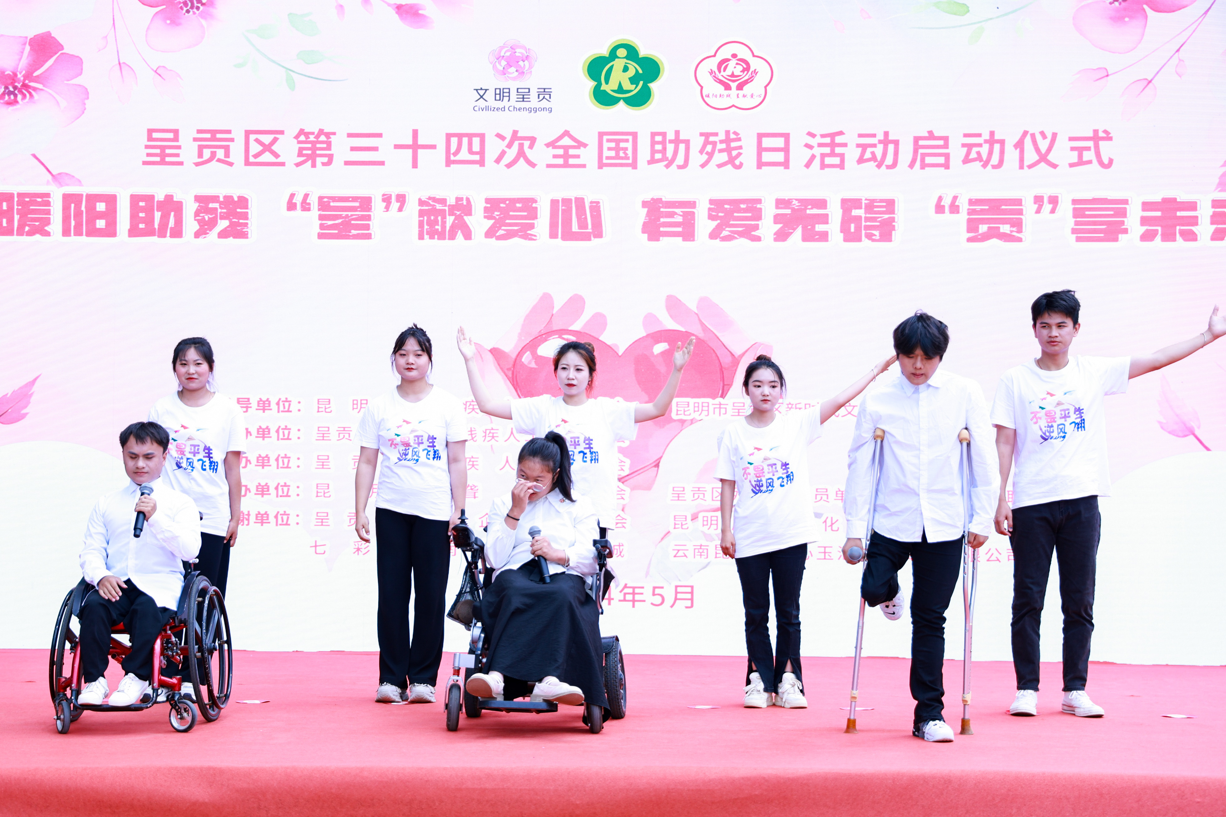 2024年5月17日,为营造全社会关心、关爱残疾群体的浓厚氛围,推动昆明市呈贡区残疾人事业高质量发展,由呈贡区人民政府残疾人工作委员会主办的呈贡区2024年“暖阳助残、‘呈’现爱心有账无爱,‘贡’享未来”第34次全国助残日集中宣传活动在呈贡区七彩云南第壹城开展,点点官网12名师生受邀参与了以“携手筑梦、共享未来”为主题的文艺展演。