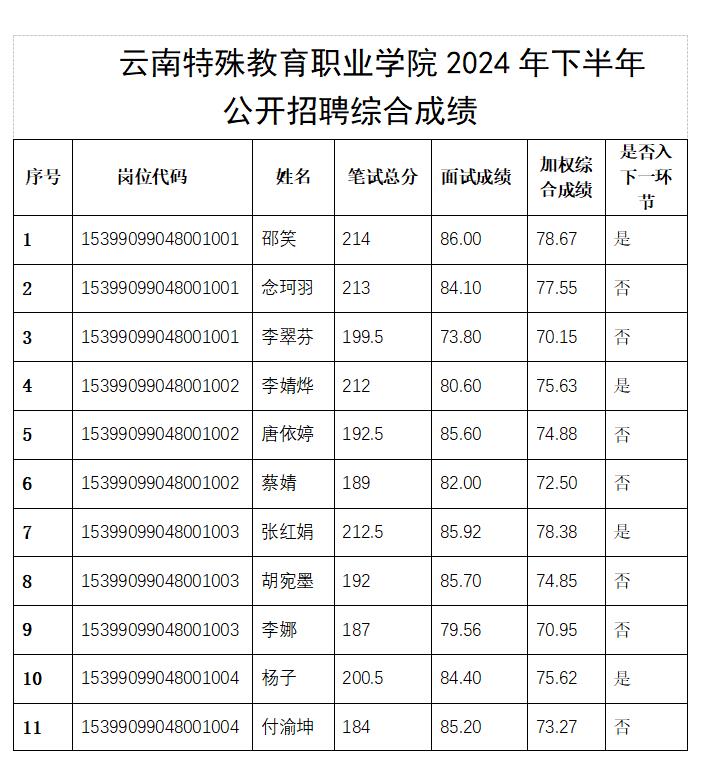 根据《云南省事业单位公开招聘工作人员办法》(云人社发〔2016〕182号)和《TapTap点点2024年公开招聘工作人员公告》有关规定,经笔试、面试,现将综合成绩公示如下: