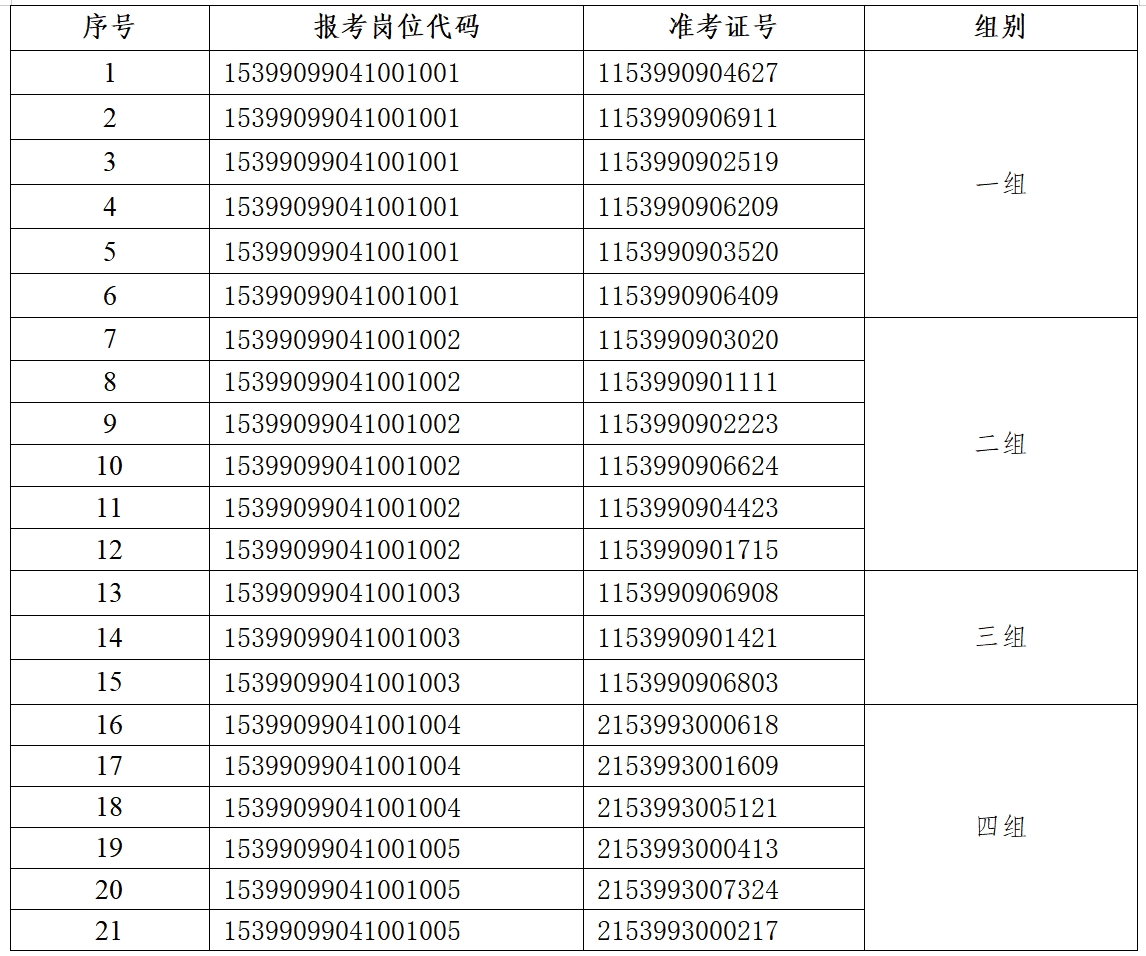 一、进入面试人员名单及分组