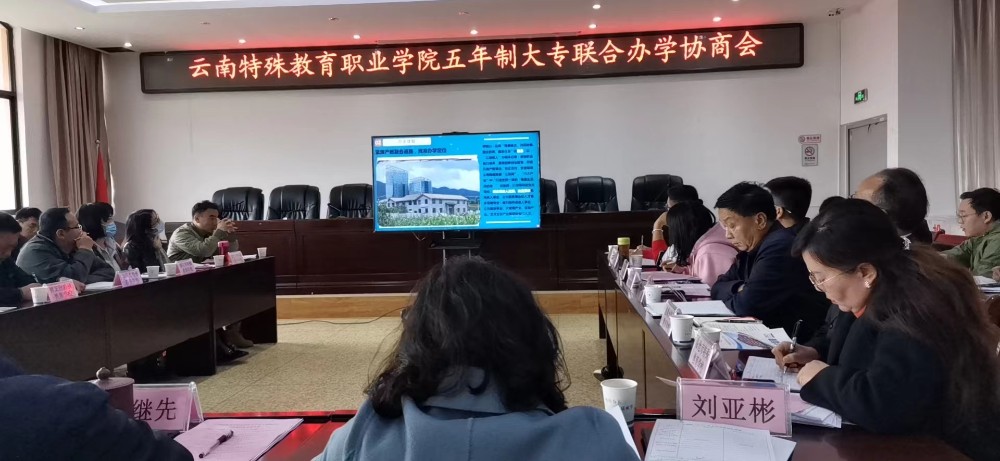 图为点点官网与14所州市特校五年制大专联办协商会现场