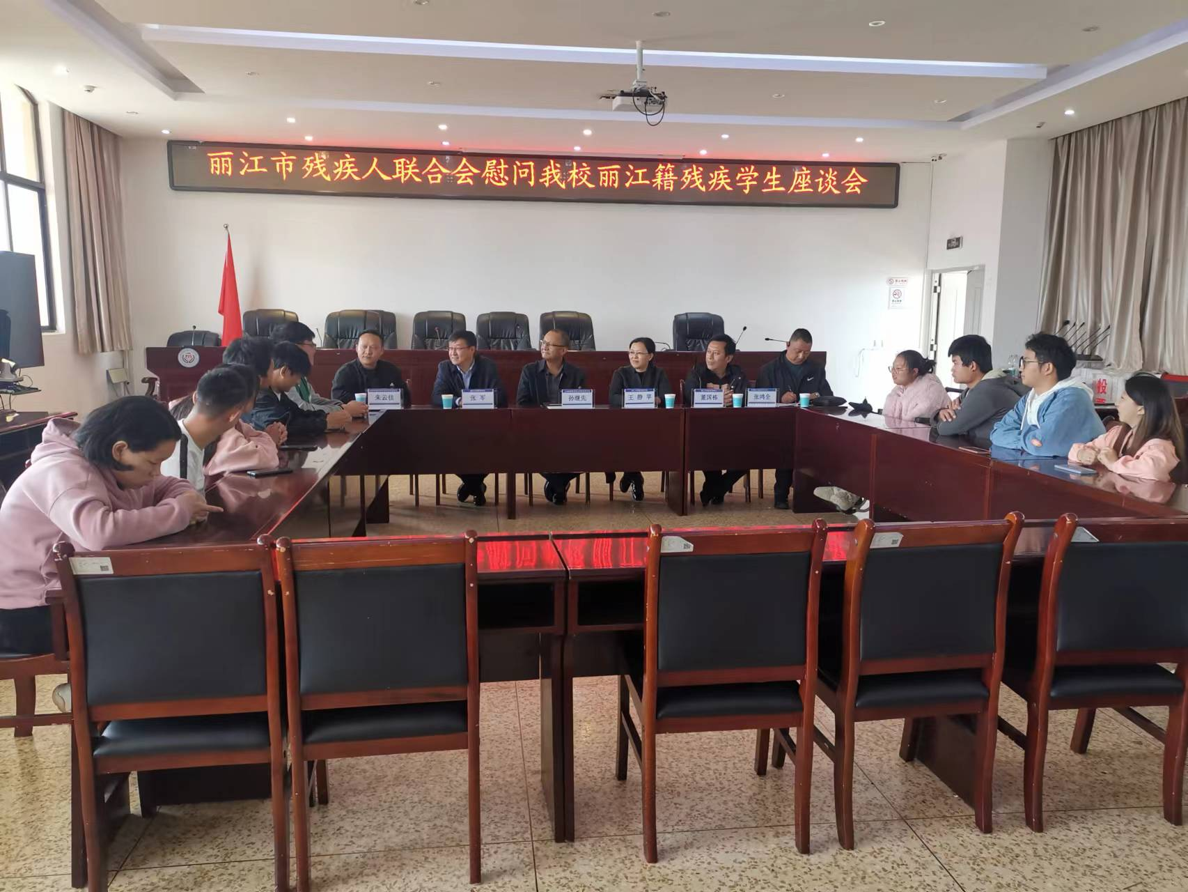 参会的丽江籍残疾学生一一向丽江市残联的各位领导汇报了自己在校的学习、生活情况及家庭状况,对丽江市残联的关心、关爱、关注表示了感谢。