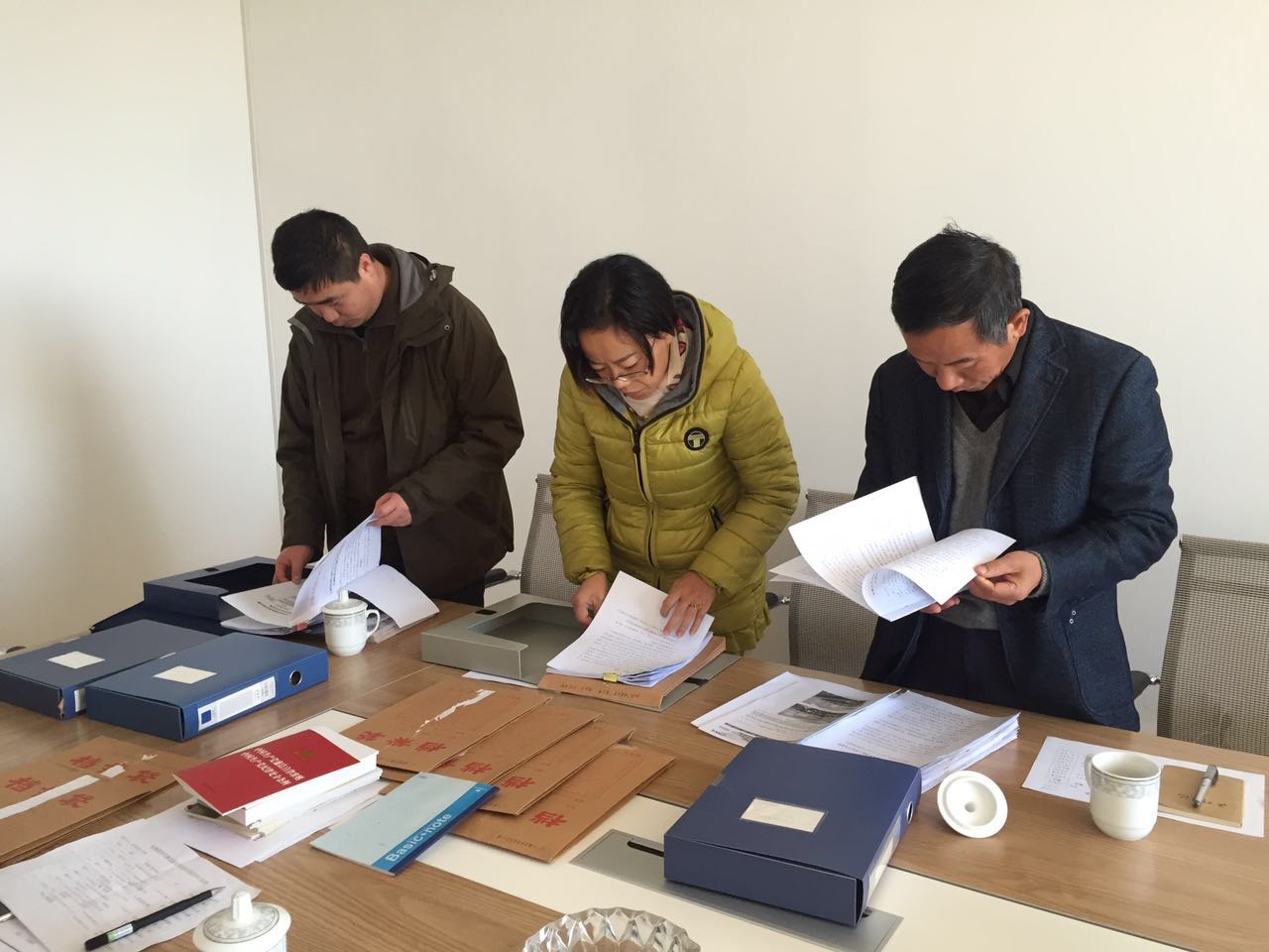 图为检查组认真查阅相关痕迹资料