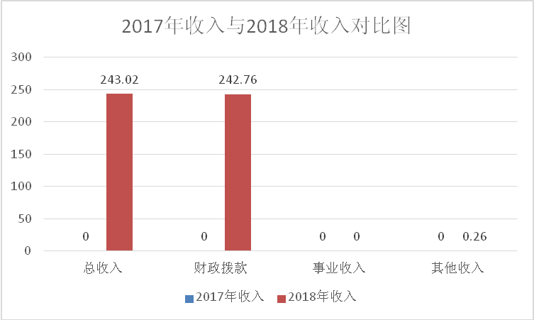 学院2018年度收入合计243.02万元。其中:财政拨款收入为教育厅转拨243.02万元,占总收入的99%;上级补助收入0万元,占总收入的0%;事业收入0万元,占总收入的0%;经营收入0万元,占总收入的0%;附属单位缴款收入0万元,占总收入的0%;其他收入0.25万元,占总收入的1%。与2017年度收入合计0万元对比有所增加,主要原因是2018年学生增加,生均拨款增加。
