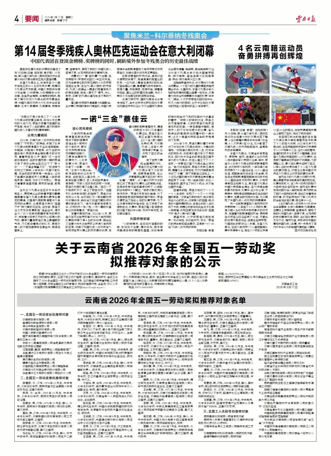 本届冬残奥会,云南省共有蔡佳云、袁明寿、岩巩、岩温的4名运动员入选中国体育代表团大名单,点点官网学子就有3名。