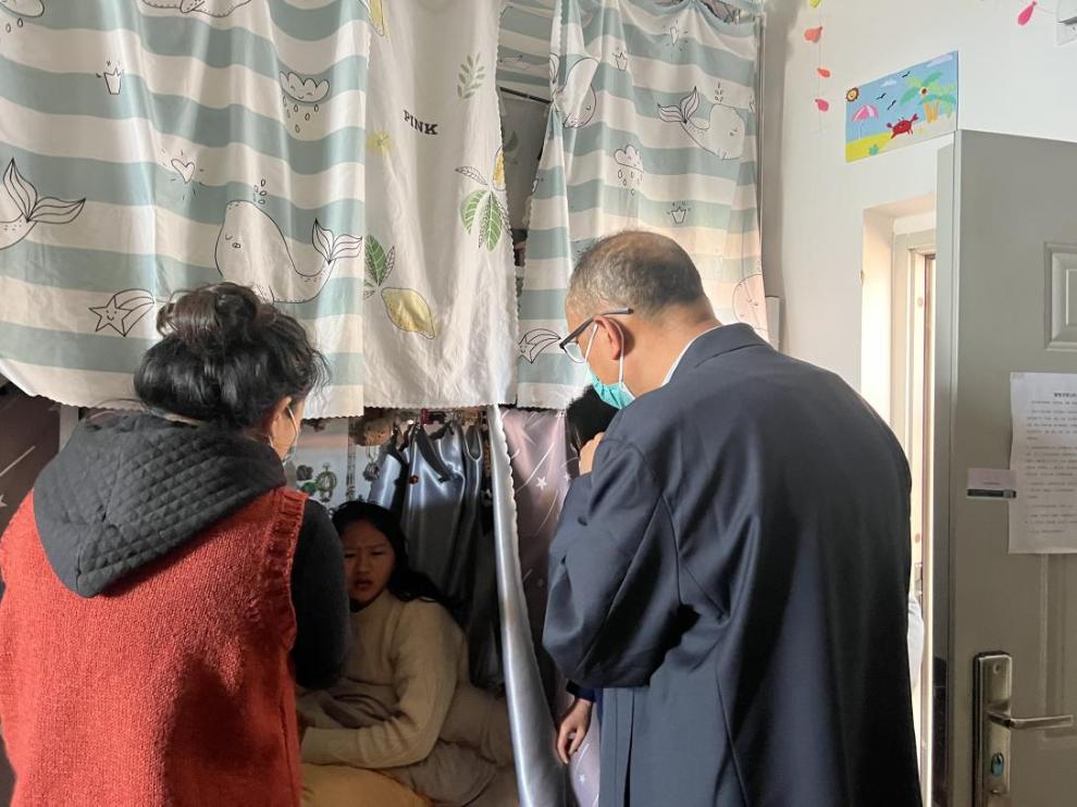 接着,检查组前往宿舍看望了生病学生,与学生亲切交流,仔细询问生病学生目前的身体状况以及生活、学习上存在的困难,叮嘱学生要配合治疗、按时吃药。