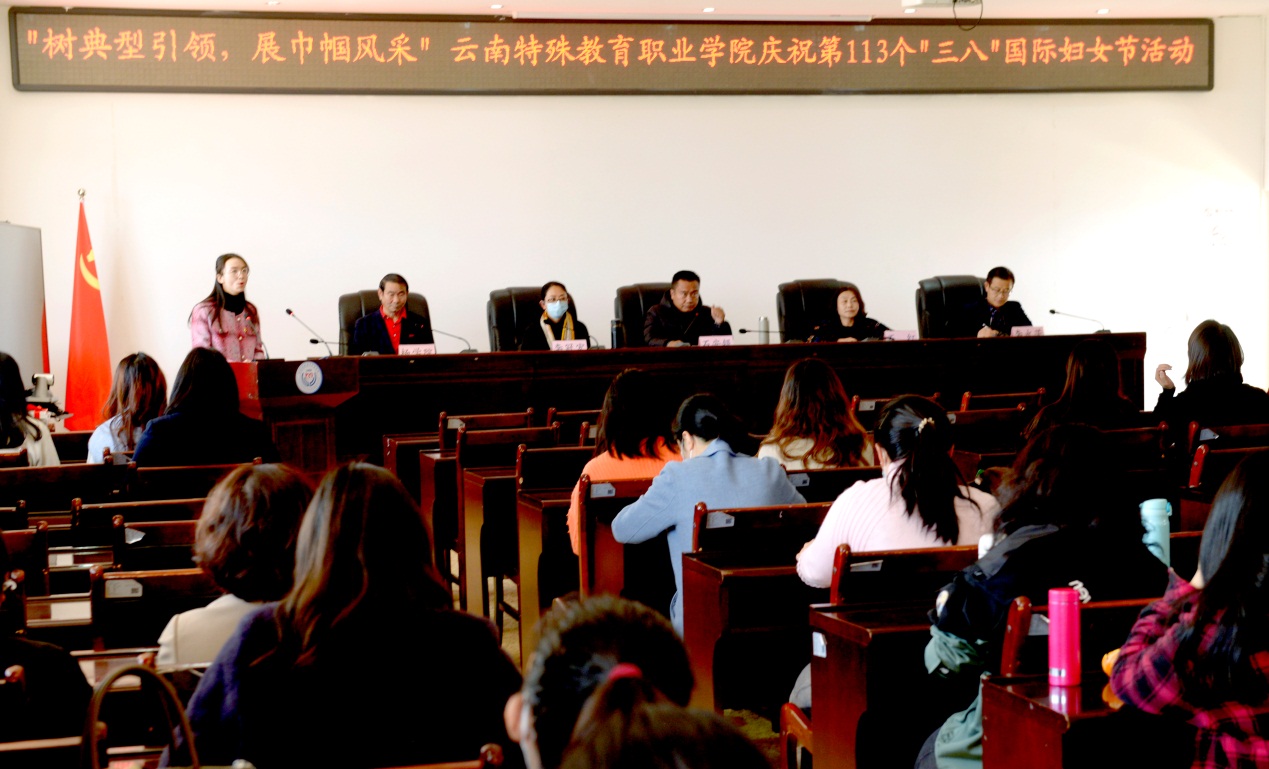 妇联主席石红在致辞中回顾了2022年学校发展中广大女教职工付出的辛勤努力和取得的成绩,希望全校妇女同胞高举习近平新时代中国特色社会主义思想伟大旗帜,坚定理想信念,心怀家国,志存高远,在践行新发展理念中激扬巾帼之志,争做“两个确立”忠诚拥护者、“两个维护”示范引领者;勇于担当作为,在推动学校高质量发展中勇担巾帼责任,争做本职岗位的表率;弘扬时代新风,在倡扬中华民族家庭美德中发挥独特作用,涵养好家规、好家风,争做家风建设的模范;不断增强本领,在追逐梦想中书写巾帼风采,为奋力开创特职院美好未来贡献巾帼力量!妇联要更加积极主动地联系女教职工和女学生,当好妇女群众的“娘家人”,助力学校的发展。