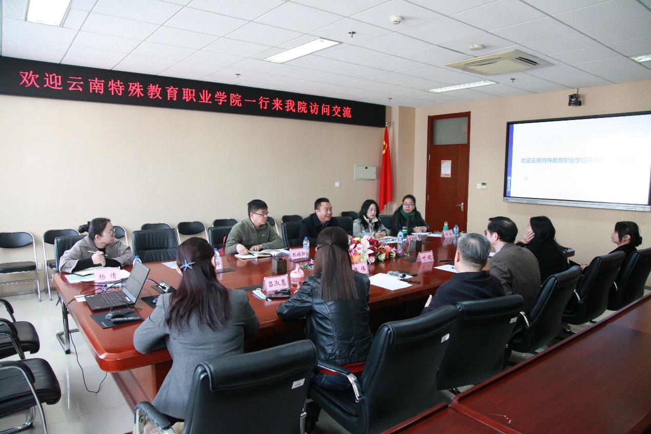 3月16日,我方来到位于北京丰台区的北京联合大学特殊教育学院,就特殊教育专业的人才培养、聋人艺术类专业建设、盲人康复治疗技术专业建设、师生交流互派、学生专本衔接等问题开展充分交流,取得良好效果。