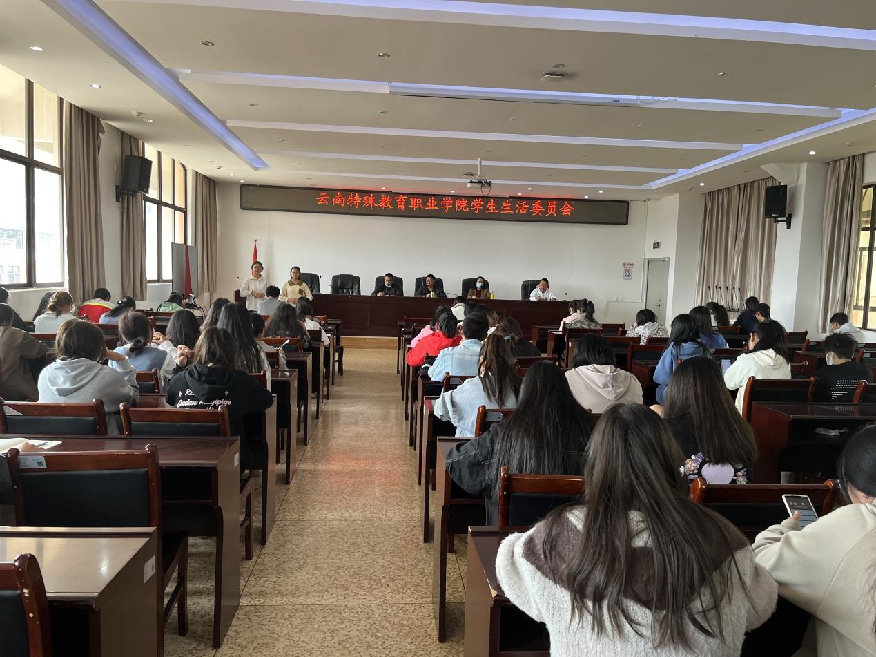 3月22日中午,学校生活委员会会议在学校大会议室召开。后勤服务中心主任、副主任、负责维修及食堂管理的老师,各班生活委员共六十余人参加了此次会议。会议由后勤服务中心副主任孟琼芳主持。
