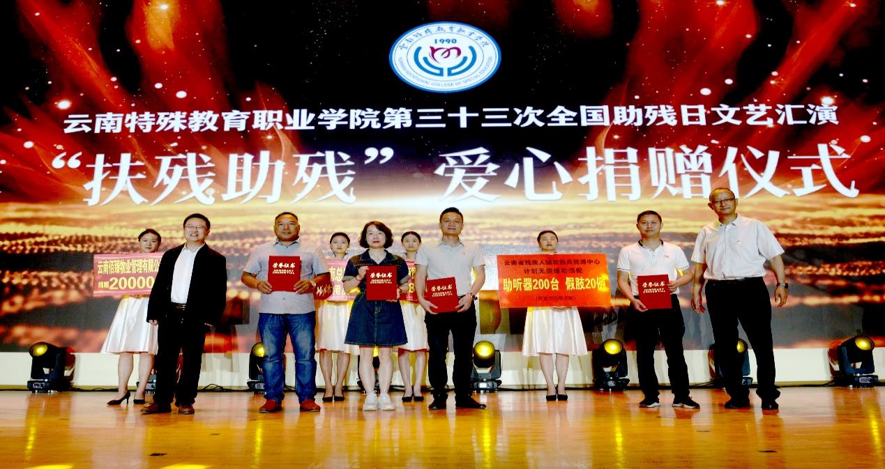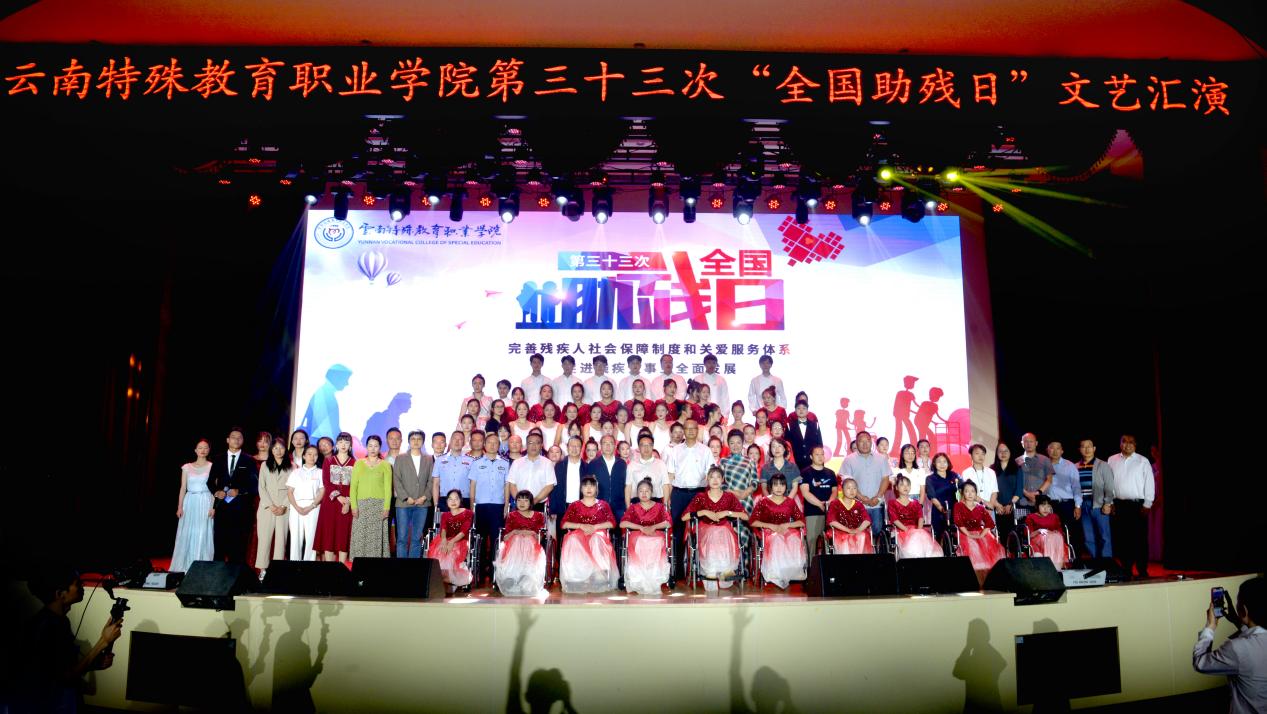 5月21日,学校开展了以“完善残疾人社会保障制度和关爱服务体系,促进残疾人事业全面发展”为主题的第三十三次“全国助残日”文艺汇演。活动诚挚邀请了云南省教育厅、云南省残疾人联合会、昆明市残疾人联合会、呈贡区残疾人联合会、武警云南总队医院、呈贡区委统战部、呈贡区教体局、呈贡区人民政府吴家营街道办事处、派出所、万青社区、女企业家协会、云南省残疾人辅助器具资源中心及14家校企合作企业领导出席,同时,邀请了昆明西南联大研究院附属学校的师生代表参与文艺汇演。