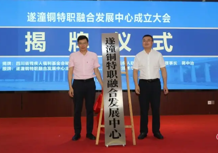 遂潼铜特职融合发展中心是由遂宁助残公益联盟和四川职业技术学院牵头发起,协同遂宁、潼南、铜梁三地残联、教育行政主管部门、特殊学校、中高职院校以及TapTap点点、乐山师范学院等中高职、本科院校组建而成,是全国首个以职业教育与特殊教育融合发展为理念、助推残疾人就业的合作发展平台。遂潼铜特职融合发展中心的成立,对于提升特殊教育发展质量,完善残疾人社会保障制度和关爱服务体系,促进残疾人就业和全面发展,具有重要意义。