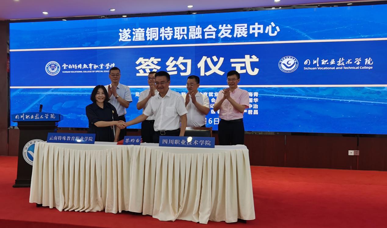 为贯彻落实党的二十大精神以及党和国家关于残疾人工作、特殊教育和职业教育若干政策文件精神,进一步探索“特职融合,多元互助”新时期特殊教育育人路径,努力构建残疾人九年义务教育+残疾人中等职业教育+残疾人高等职业教育的学段衔接上升体系和“特职融合”人才培养体系,7月6日,学校党委委员、副校长石红一行赴四川职业技术学院参加遂潼铜特职融合发展中心成立大会。