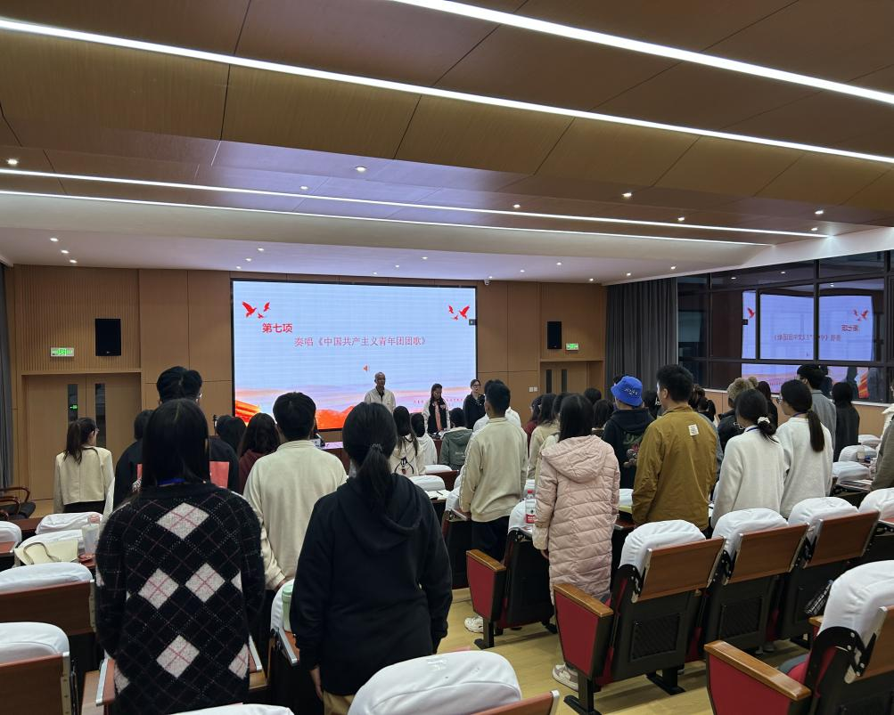 参加开班仪式师生齐唱共青团团歌