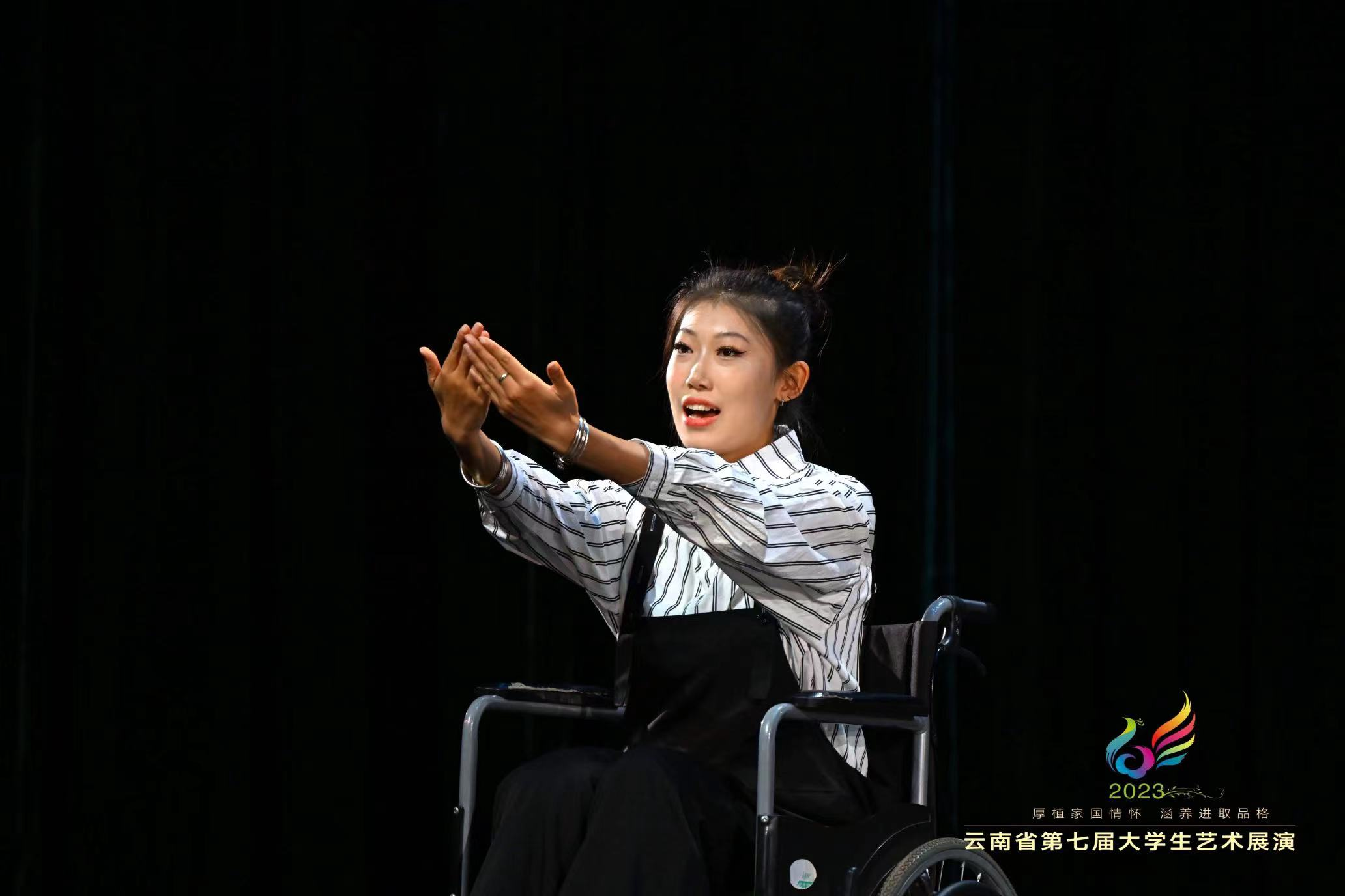 大学生艺术展演是根据教育部《学校艺术教育规程》举办的全国性大学生艺术比赛,每三年一届。作为云南省大学生艺术教育最高水平的展示,本届艺术展演以“厚植家国情怀,涵养进取品格”为主题,以歌舞、朗诵、戏剧、民族器乐演奏等形式,诠释中华文化的博大精深,演绎青春生命的绚丽多彩,展示云南大学生扎实的艺术功底和创作才华,表达了他们对美好生活的向往和对艺术的热爱之情,展现云南高校学子积极向上、奋发向前的精神风貌。