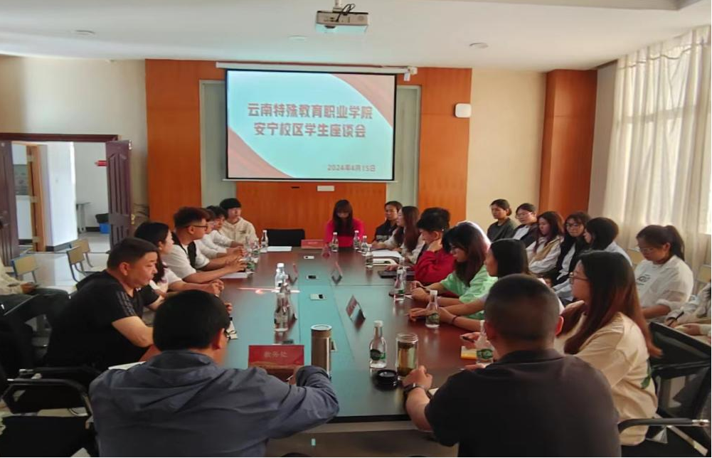 学校全面践行“一线工作法”,深入了解学生的思想动态和学习生活状态,于2024年4月15日9:00-10:30在安宁校区翔宇楼601办公室召开学生座谈会。管委会办公室主任袁自寿,学生处副处长罗宝艳、教务处副处长王立宇、后勤处朱文、云南联通公司代表周晓莉与特殊教育与公共服务系、艺术系、经济信息系的27名学生代表出席会议。