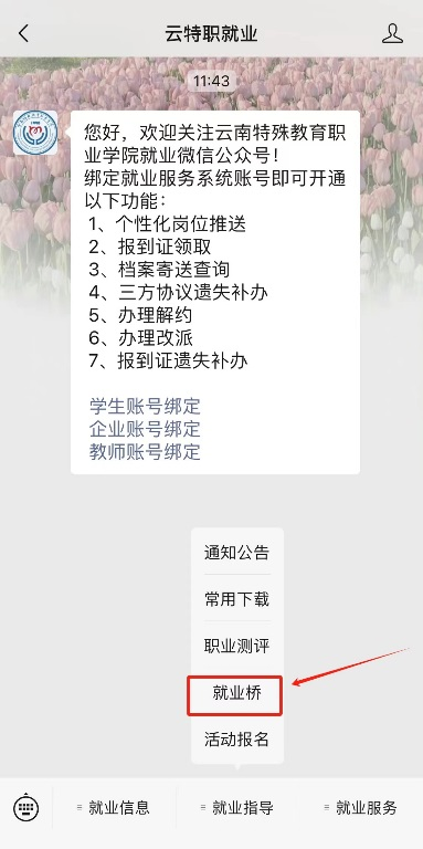 为了更好地服务点点官网毕业生,方便学生及时了解、查询就业相关资讯、政策及职位信息,云南特殊教育职业学院专属就业桥上线啦!