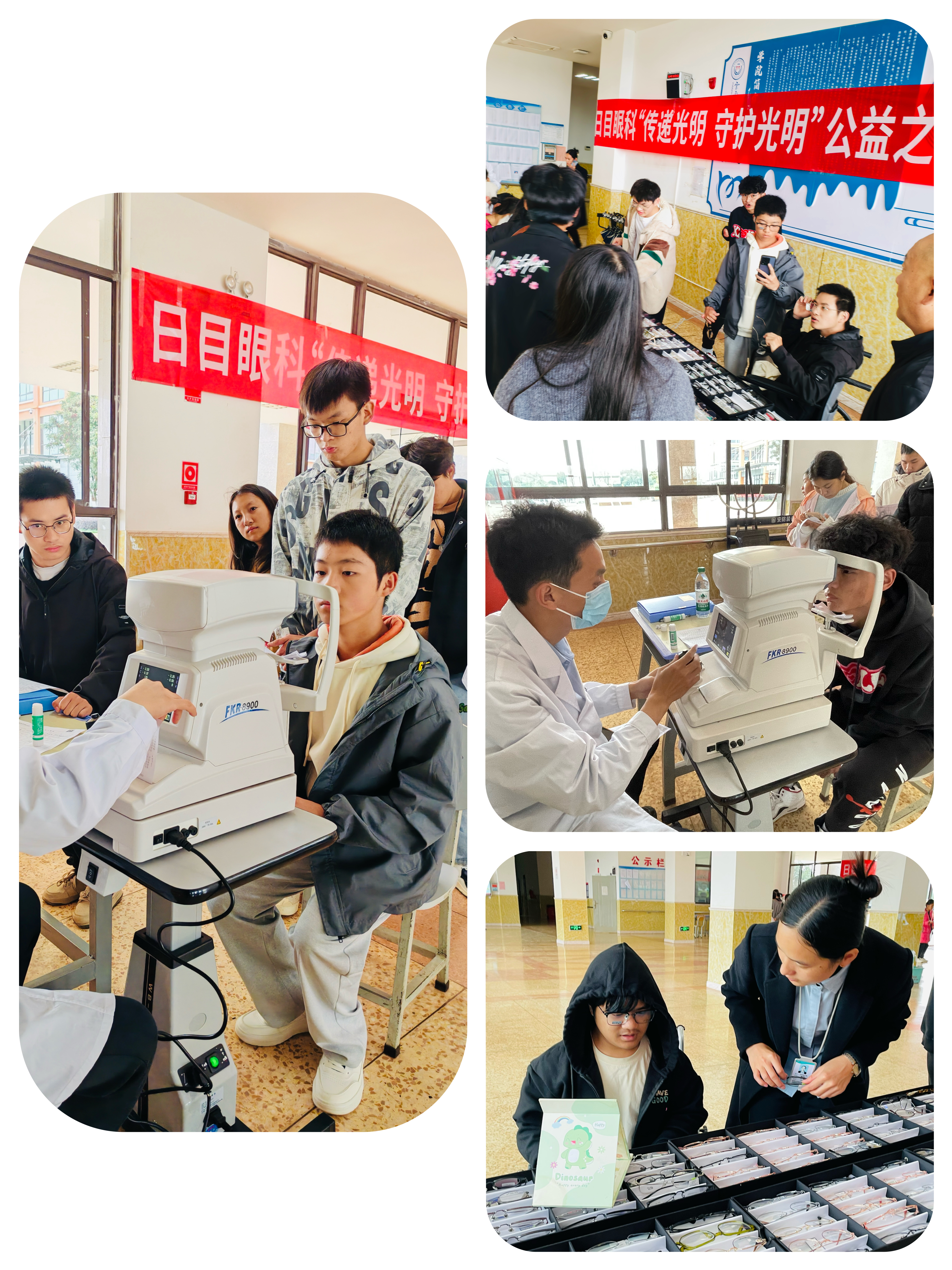 活动当天,天气有些许寒冷,但日目眼科的专业团队早早地便来到了学校,心里洋溢着浓浓的爱意。同学们陆陆续续到来,在教师的引导下,有序地进行视力检测。每一个孩子,无论年龄大小,都满怀期待地坐在检测仪器前,检测结束,日目眼科根据每位学生的视力情况,为他们量身定制合适的眼镜,并现场进行了佩戴调整,确保每一副眼镜都能完美贴合,带来最佳的视觉效果。