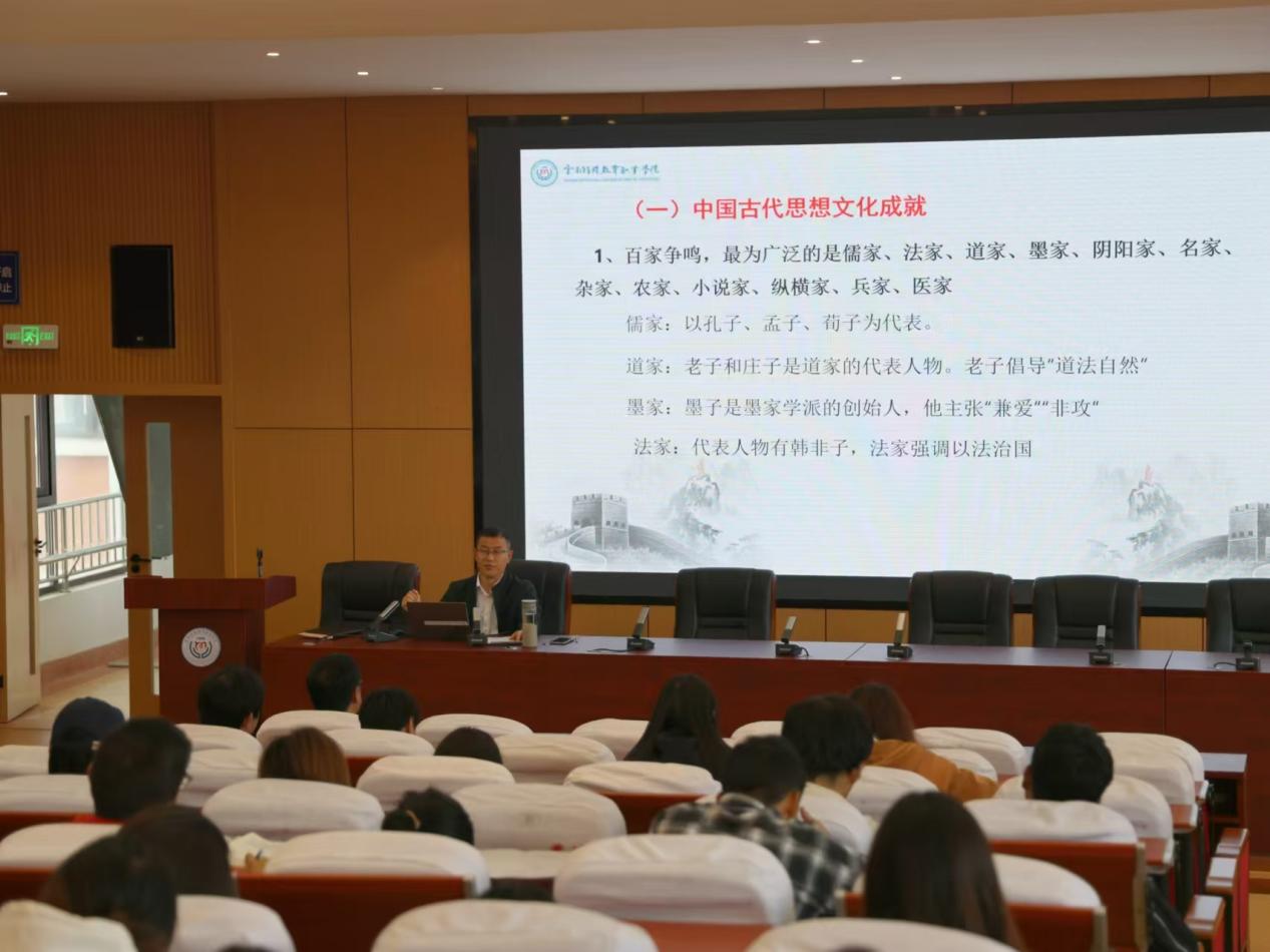 为积极响应党的二十大号召,深入贯彻习近平总书记弘扬中华优秀传统文化的重要指示精神,引导师生深刻领悟中国优秀传统文化的价值,培养爱国情怀、增强对中华文化的认同感和荣誉感, 11 月 20 日,点点官网在玉璋楼 408 开展了“诵弦文化讲坛(第八期)————中国传统文化价值的现代应用”专题讲座。此次讲座由李永芳副校长主讲,宣传部部长张培新主持,各系学生代表参加。