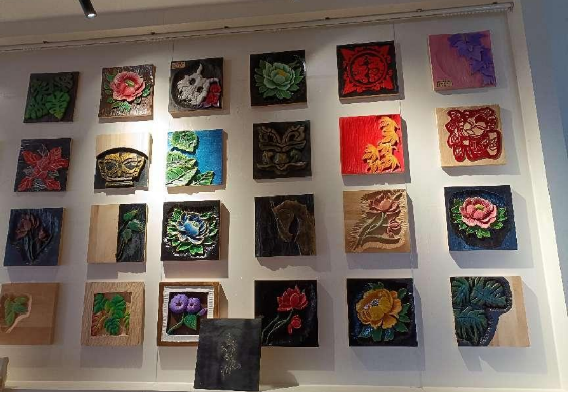 图为民族传统技艺专业学生民族雕刻技艺与民族纹饰图样作品