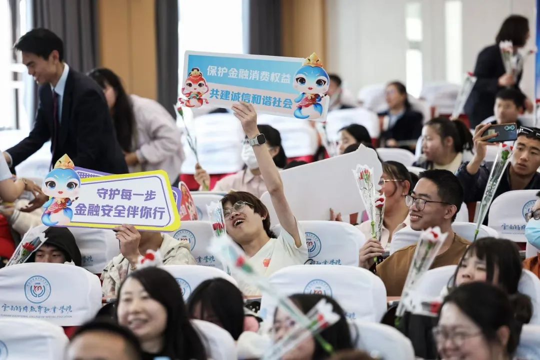 活动中,云南金融教育宣讲团宣讲员(建行云南省分行讲师)为学生们讲授了“量身定制”的《金融消费者八项权益》消保一堂课,通过手语翻译、趣味抢答等方式,将深奥的金融知识巧妙地“翻译”成手语和生动的情景化案例,让特殊群体在视觉和情感共鸣中,筑牢了金融安全防线。《送你一朵小红花》的表演,是该行员工将花之暖意实打实地传递到学生手中。
