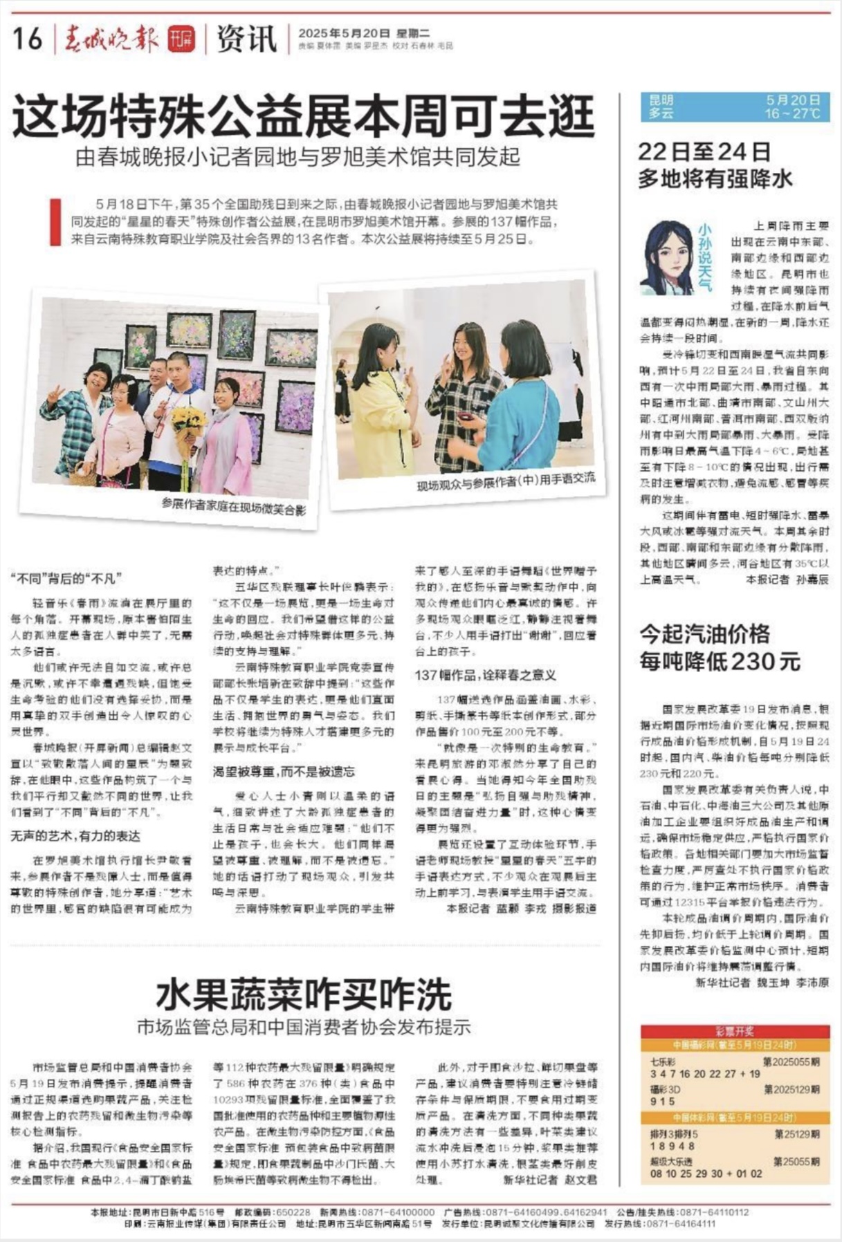 “星星的春天”特殊创作者公益展由《春城晚报》与罗旭美术馆共同发起,13名参展作者来自云南特殊教育职业学校及社会各界,总计137幅送选作品涵盖油画、水彩、剪纸、手撕篆书等纸本创作形式。本次特展将持续至5月25日。