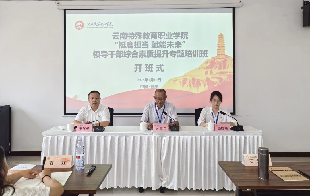 开班仪式在庄严的国歌声中拉开序幕。全体学员肃立齐唱,以昂扬姿态开启学习征程。随后,梁家河分院院长王江虎代表承办方致欢迎辞,他从历史厚度、红色记忆与理论创新系统阐释了延安精神的三维内涵。特职院党委书记孙继先作动员讲话,要求全体参训干部务必严守政治纪律和政治规矩,遵守学习培训、安全保密、廉洁自律等各项规定,自觉维护云南干部的良好形象。