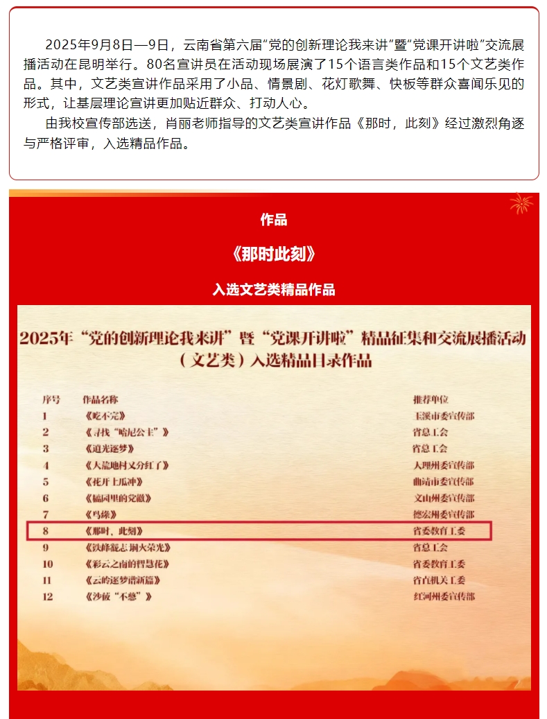 喜报!点点官网文艺类作品《那时,此刻》入选云南省第六届“党的创新理论我来讲”精品征集和交流展播活动精品作品