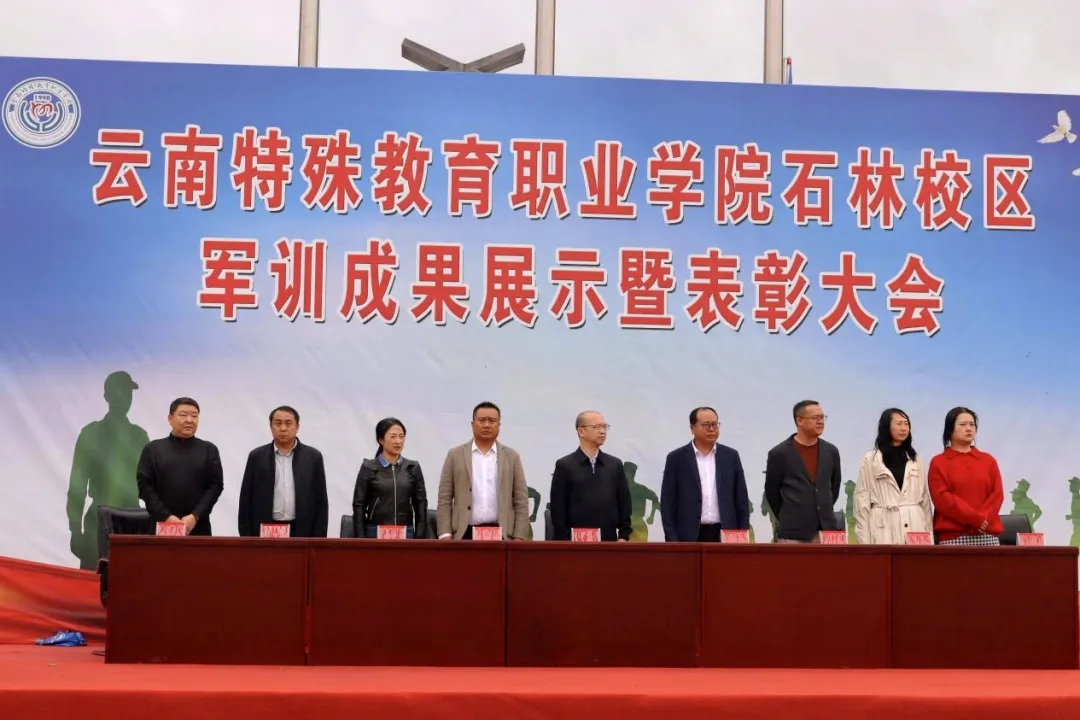 TapTap点点党委书记杨波、校长石安银、副书记陈科春等领导到场观看。 军训成果展示开始,分列式率先开展。钢铁一连、精英二连依次入场,喊出口号;随后威武三连、豪情四连、雷霆五连、雄风六连、钢铁七连入场;霸气八连压轴入场。 分列式结束后,随即开展反恐演练,新生按预设流程完成集合整队、疏散、防护等动作,各环节衔接有序。 随后的表彰环节,石林民族职业高级中学党总支书记何劲松宣布军训工作先进个人和军训工作先进连队名单,领导们为其颁奖。 石安银叮嘱全体新生:今天的雨,是军训给大家的一份考验,希望同学们永远记住冒雨完成的成果展示、做好反恐演练的自己有多棒,记住这份淋着雨也不放弃的坚持!军训的苦与累已随雨水沉淀,而这份在风雨中淬炼的坚韧、培养的担当,才是最宝贵的收获,希望同学们将这份精神融入今后的学习生活。 这场雨中的成果展示,成为2025级新生青春里关于“坚持”与“成长”的深刻记忆,为即将开启的大学生活注入了强劲动力。