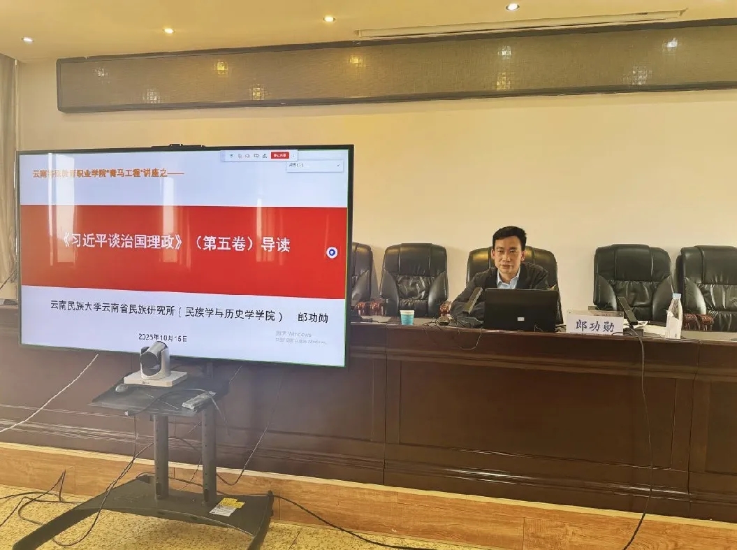 云南民族大学云南省民族研究所(民族学与历史学学院)党委书记郎功勋在《习近平谈治国理政》第五卷导读中,创新采用三维导读法进行深入解析。他首先系统回顾了前四卷的核心主题,为理解第五卷奠定理论基础。在重点解读环节,特别聚焦第五卷中以中国式现代化全面推进中华民族伟大复兴等专题,结合新时代背景进行深入阐释。针对特殊教育青年群体的成长需求,郎功勋提出四点具有实践指导意义的建议:一是建立自我意识,帮助青年认识自身价值;二是掌握学习方法,提升学习效能;三是培养社交能力,促进人际交往;四是学会自我相处,增强心理调适能力。这些指导既与治国理政理论相呼应,又紧密结合青年成长实际,实现了理论联系实践的有机统一。