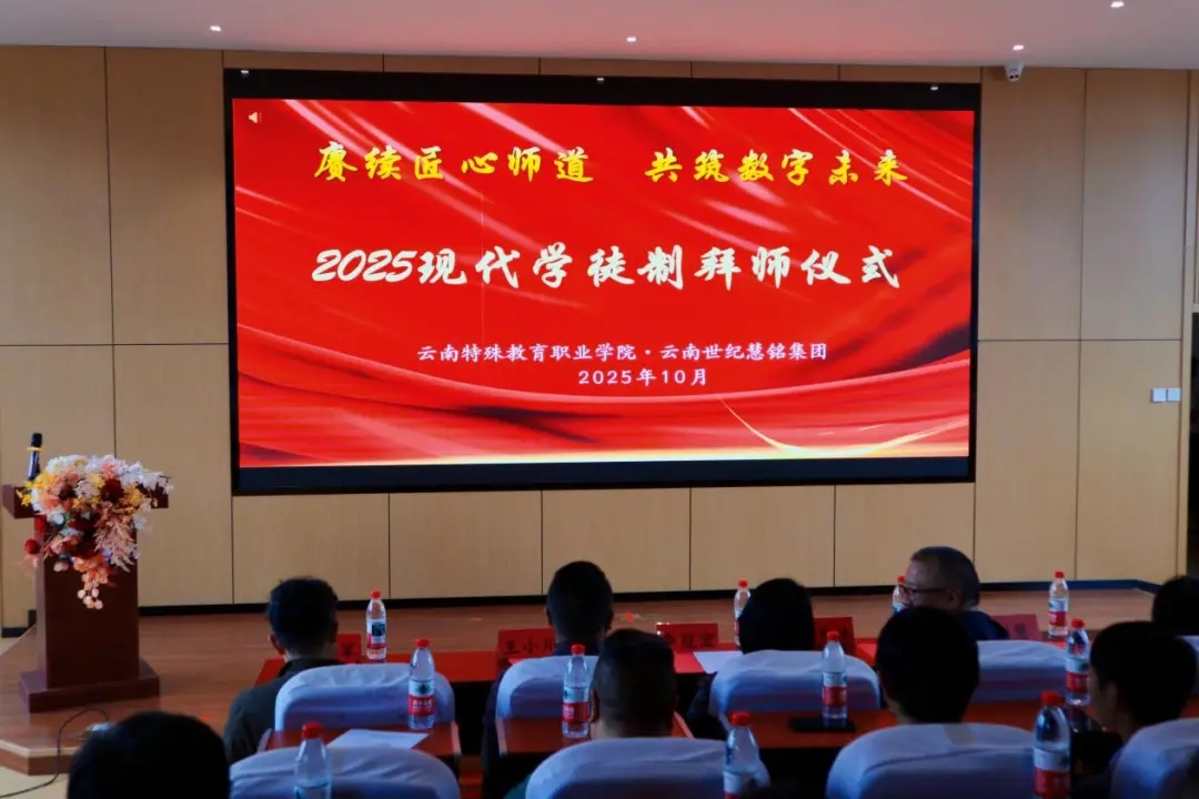 副校长李冠宏在致辞中指出,此次拜师仪式是贯彻国家职业教育改革的重要举措,也是“岗课赛证”综合育人模式的生动实践。通过校企协同育人、工学交替培养,全面提升特殊群体学生的职业能力与就业竞争力,助力“人人皆可成才、人人尽展其才”的教育目标落地。 世纪慧铭集团副总经理高自良表示,集团将持续深化“产教互融、协同育才”的理念,打造以岗位需求为导向、以技术技能提升为核心的育人体系。 学校宣传部部长张培新与世纪慧铭集团董事长余文林共同为 16 名残疾学生颁发“为玉”助学金,为学校 8 位企业导师代表颁发聘书。 导师代表吴俐民在发言中承诺,将恪守 “传、帮、带” 精神,倾囊相授专业技能与实践经验,助力学徒成长为数字经济领域实用人才。 拜师环节庄重有序,学徒们行拜师礼、敬奉拜师茶,以传统礼仪正式确立师徒联结。学徒代表何赶节表态,将怀揣敬业初心勤学苦练专业技能,潜心钻研、笃行不怠,努力成长为新时代高素质技术技能人才。 此次拜师仪式不仅是现代学徒制在TapTap点点校企合作中的重要实践,更是推动职业教育高质量发展的创新探索。学校与世纪慧铭集团将继续携手,共同打造产教融合典范,助力特殊学子以技立身、以德立业,谱写教育赋能数字未来新篇章。
