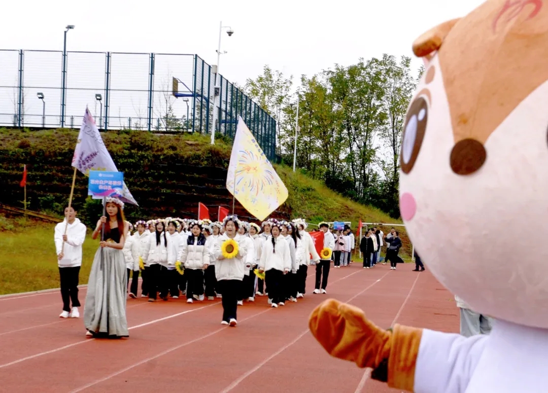教育与康养学院学子朱正学作为运动员代表宣誓,承诺以拼搏诠释奥林匹克精神;裁判员代表杨阳庄严宣誓,确保公平执裁。当院长石安银宣布“运动会开幕”,彩烟腾空而起,激昂的主题曲响彻赛场,全场欢呼声响彻云霄。
