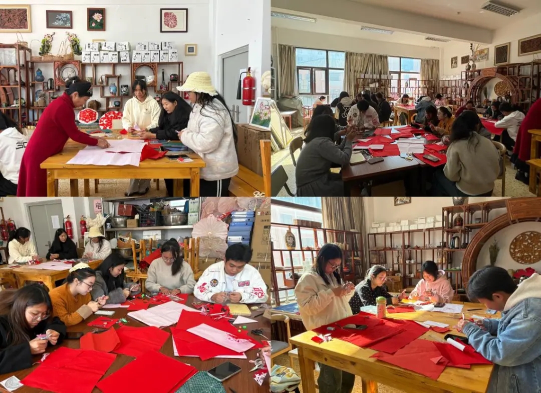 艺术学院党支部精心策划并组织开展的“非遗进校园”文化活动,特邀云南省非物质文化遗产代表性传承人汪元、云南剪纸非遗传承人代莉两位老师走进课堂,围绕“人物剪影”与“团花制作”进行现场教学,带领师生沉浸式体验非遗之美,感悟匠心精神。