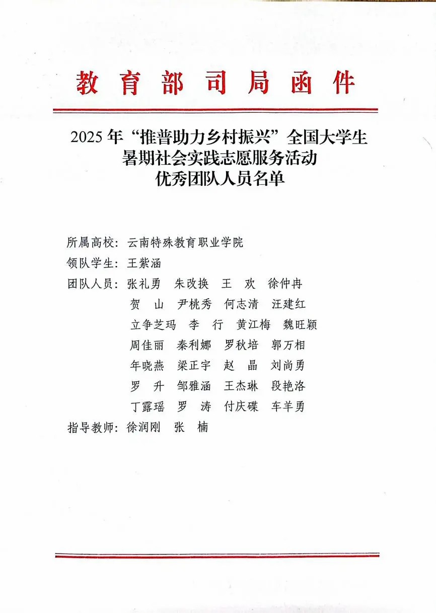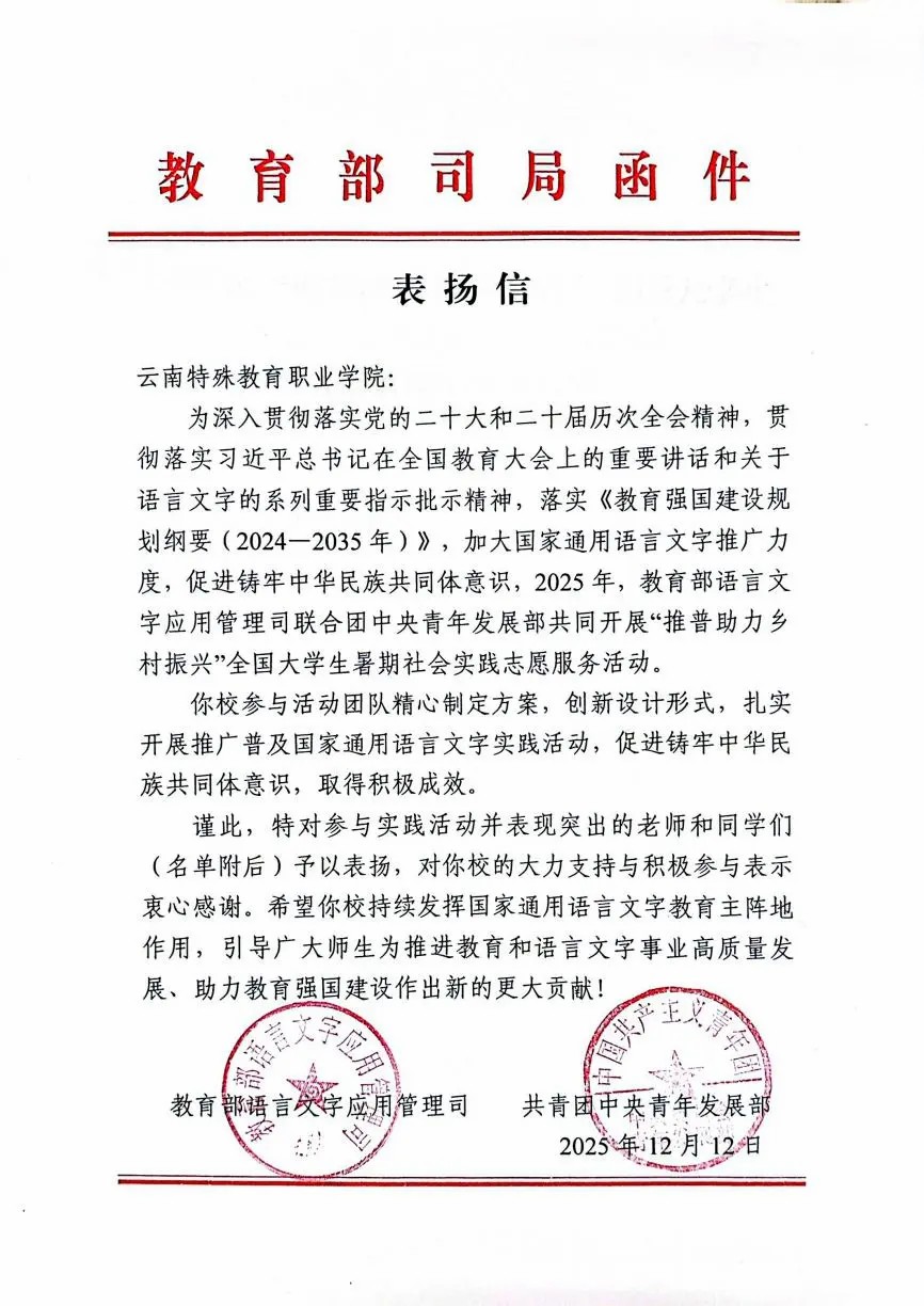 近日,2025年“推普助力乡村振兴”全国大学生暑期社会实践志愿服务活动优秀团队名单正式揭晓!点点官网艺术学院“无声墙绘志愿服务队”在全国2000支参评团队中脱颖而出,荣获全国“优秀团队”称号,并获得教育部语言文字应用管理司、共青团中央青年发展部联合表扬。